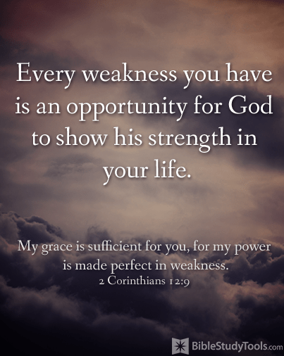 Character, Excellence, Faith, PurposeStrength in Weakness June 19, 2020 lisae87 Image: BibleStudyTools.com Share this: Click to share on X (Opens in new window) X Click to share on Facebook (Opens in new window) Facebook Like Loading... Published by lisae87 Wife, mother, and experienced administrative professional seeking to glorify God in every area of my life. View all posts by lisae87