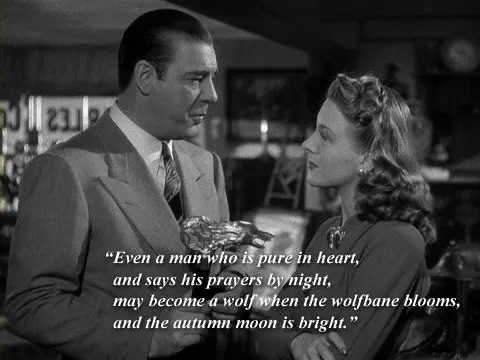 Lon Chaney, Jr. portrays the character perfectly, of course. He has a pure innocence about him. He seems ever so humble and just wants freedom from the curse. However, the struggle within is real. He just wants to be free from the struggle.